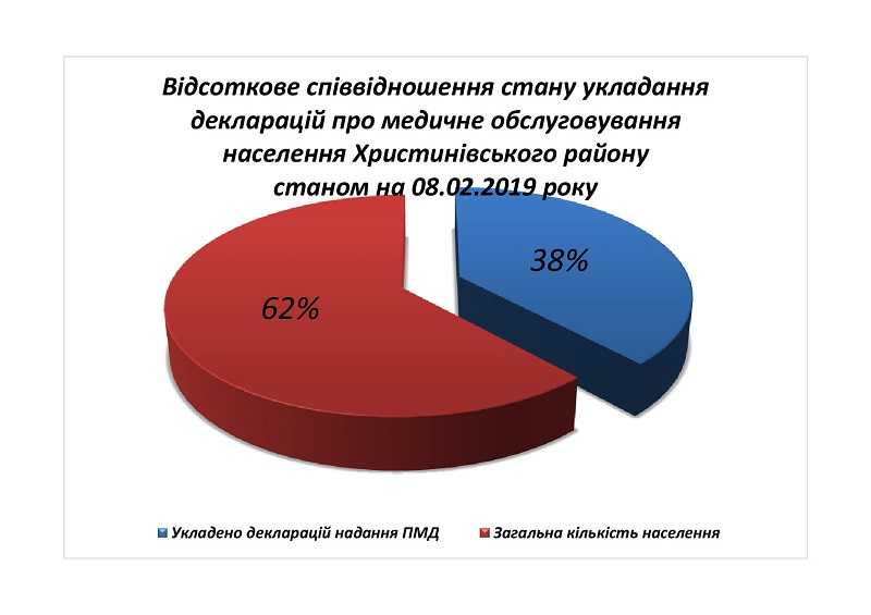 Статистика укладання декларацій лікарями КНП “ЦПМСД” Христинівського району станом на 08.02.2019 року