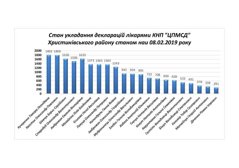 Статистика укладання декларацій лікарями КНП “ЦПМСД” Христинівського району станом на 08.02.2019 року